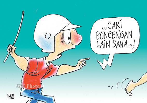 Singkat cerita, setengah jam pun berlalu. Ketika masih asyik pencat-pencet HP, tiba tiba Koplo merasa ada yang membonceng di jok belakang motornya. Ia berpikir itu pasti Lady Cempluk. Maka tanpa menoleh ke belakang, Koplo pun menstarter motornya. Tapi apa yang terjadi Saudara-Saudara? Orang-orang yang ada di sekitarnya pada ketawa ngakak melihat ke arah Koplo.